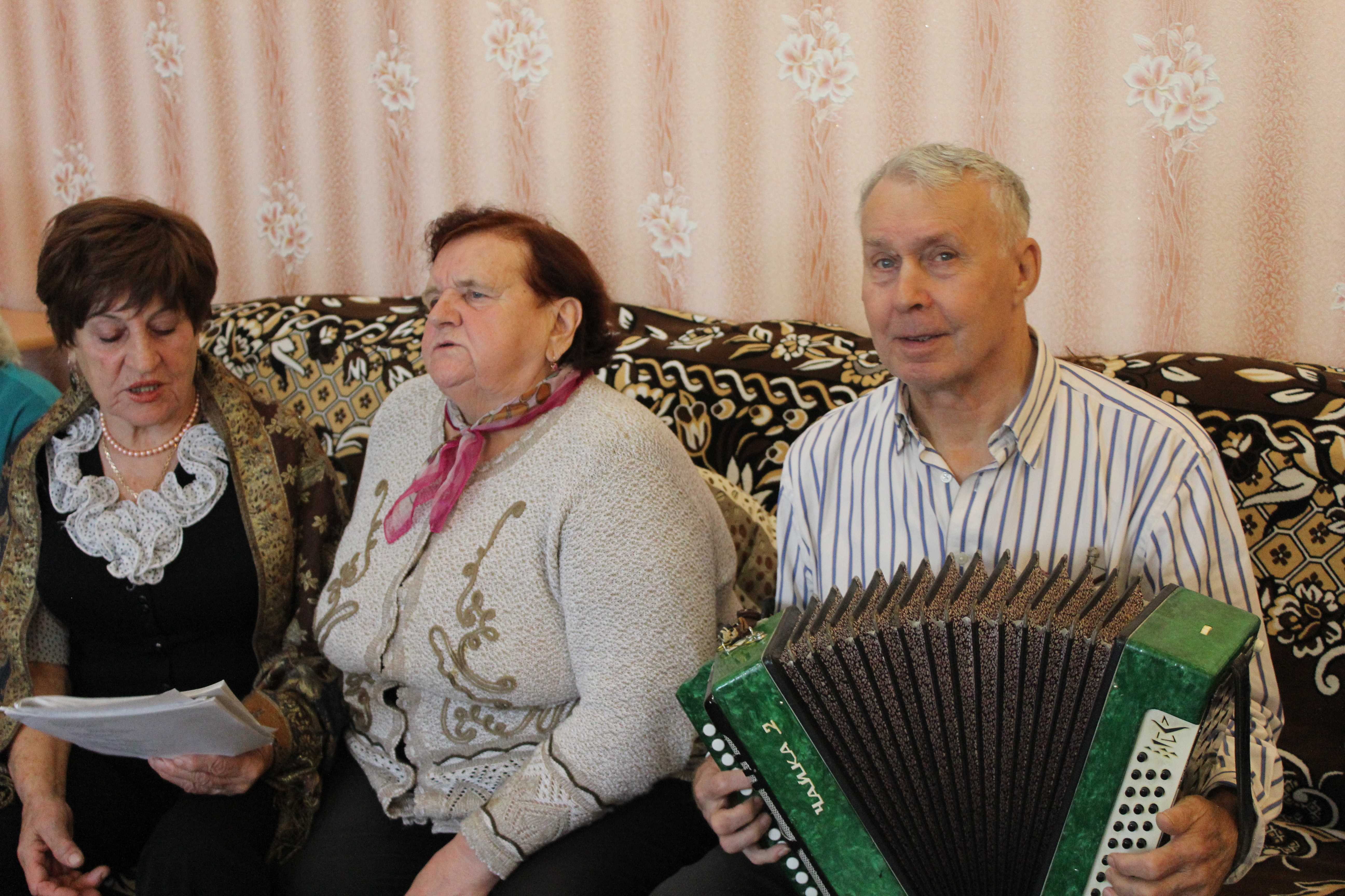 В актовом зале пенсионеры разделились группами по интересам: играли в нарды и пели под гармошку. Среди гостей была супружеская пара Василия и Марии Попковых. «У нас сегодня юбилей семьи, - поделился Василий Сергеевич, - принимаем поздравления с золотой свадьбой!». Их торжественно поздравили с этой замечательной датой.